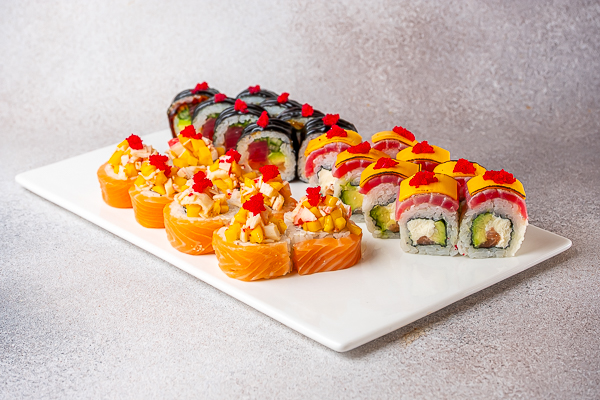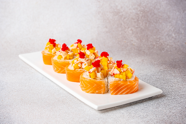 Рол Королівський, Футомак Лосось Тунець, Жовтий Дракон, Рол Вулкан Лосось - Манго