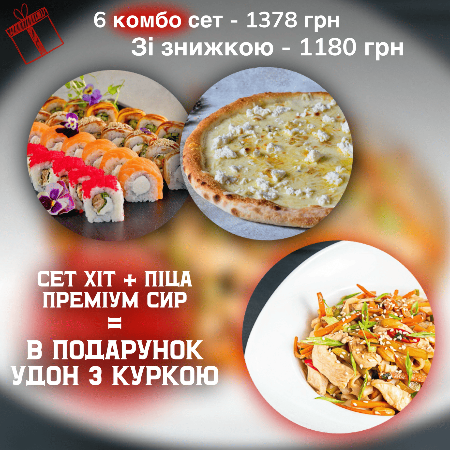 Сет Хіт , Піца Преміум Сир , в подарунок Удон з Куркою