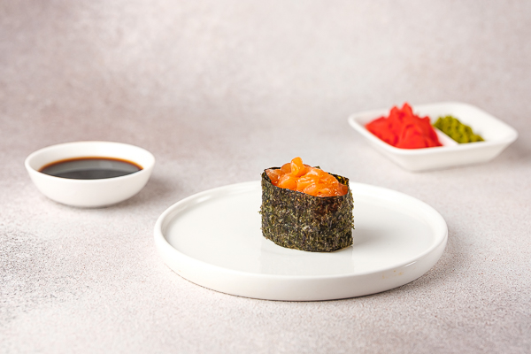Лосось, копчений лосось, сніговий краб, вершковтй сир Філадельфія, тобіка червона, огірок, рис, норі