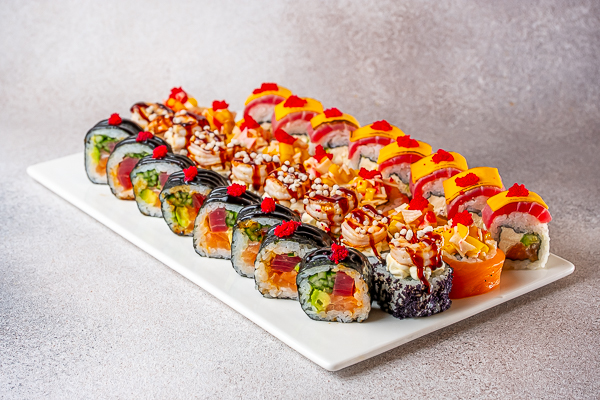 Рол Королівський, Футомак Лосось Тунець, Жовтий Дракон, Рол Вулкан Лосось - Манго