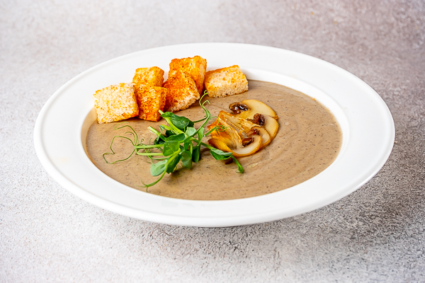 Печериці, білі гриби, картопля, вершки, цибуля, сіль перець, сухарики.