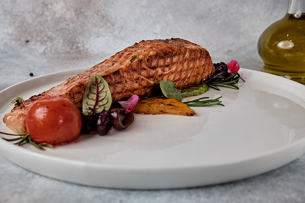 Філе лосося, овочі гриль , розмарин,тар-тар соус, лимон